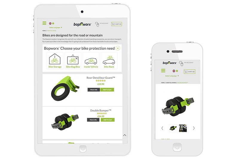 We created a beautiful responsive, multi-lingual, magento website that reflected the clean modern style of the Bopworx brand and showed these new products in a variety of situations and uses.